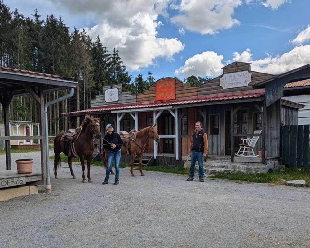 Du reitest durch endloses Gelände. Dein Pferd ist entspannt, du bist frei. Abends Lagerfeuer und BBQ. Andere Pferdefreunde, echte Gespräche. Das ist die Old West Ranch.